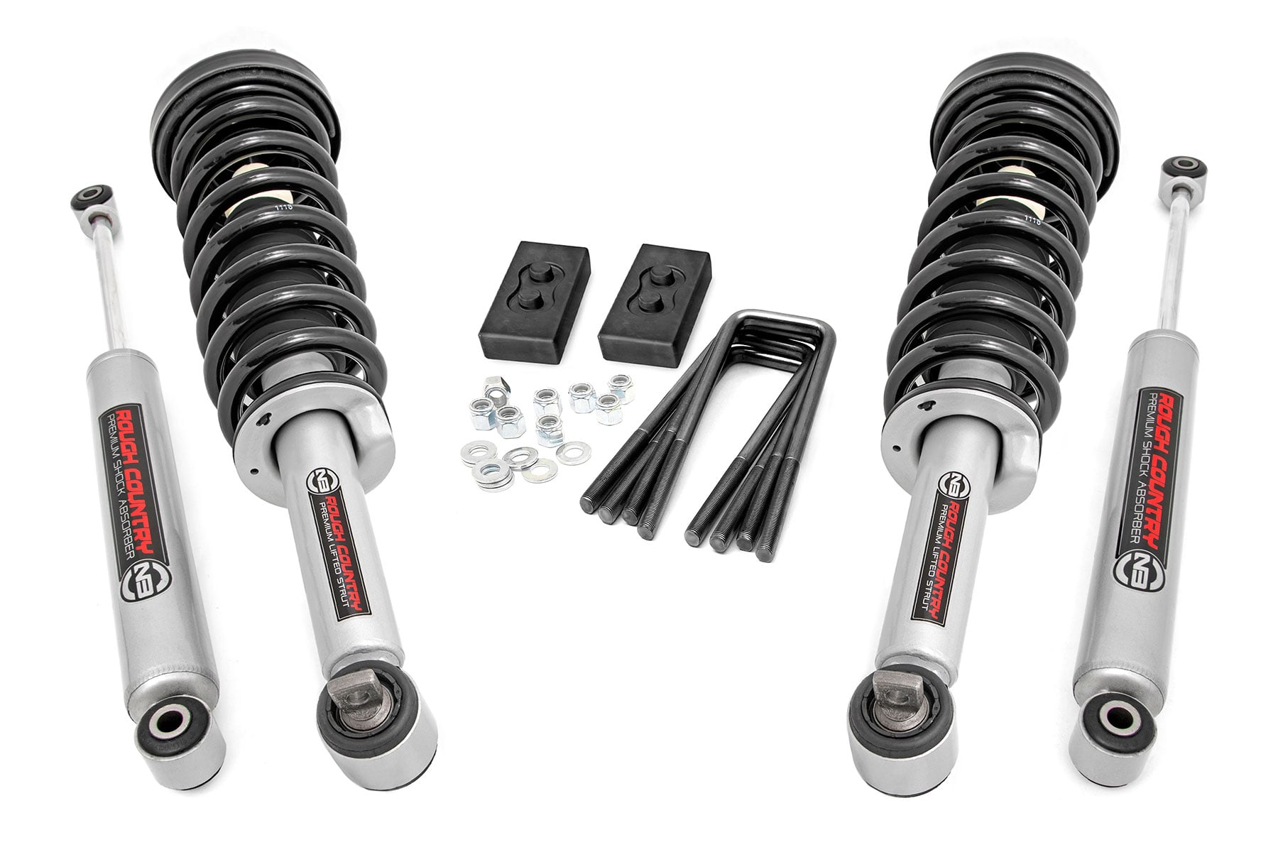 Level your F-150 with Rough Country's new, head-turning Aluminum Leveling Spacer. This easy to install, innovative Aluminum Spacer combines great looks and strength, while providing 2 inches of lift. This new spacer features aircraft quality, T6061 Billet Aluminum offering enhanced durability against elements like rain and rust. Rough Country's new spacer design has a driver and passenger side pattern that allows for clearance between the upper control arm and the strut. This simple design is easy to install with a 100% bolt-on installation process that can be done in mere hours. Best of all, this simple kit levels the front of your truck with the rear, giving your vehicle an overall more aggressive appearance and plenty of room for up to 35-inch tires.