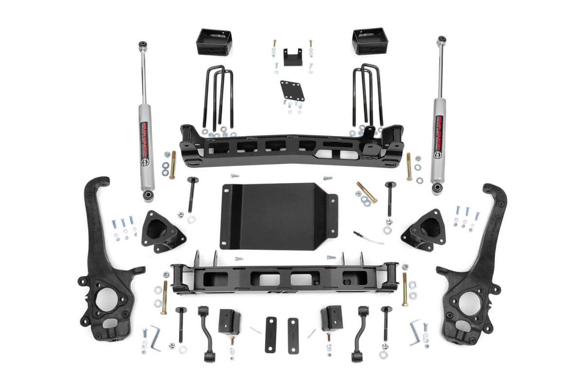 Explore New Heights: Give your first-generation Nissan Titan an aggressive new look and unparalleled off-road performance with Rough Country's 4-inch Suspension Lift. This all-inclusive kit features everything needed to take your Nissan off the freeway and into the fields.Innovative Design and Construction: When changing a vehicle's suspension, the key to preserving ride quality is keeping the geometry of all suspension components as close to their factory angles as possible. This suspension kit combines the use of durable steel knuckles, differential brackets, and drop cross members to reduce cv angles and simulate factory angles all while achieving new heights. Featuring a set of upper strut spacers that offer uncompromised strength and rigidity, gaining lift height is no issue. Completing the rear of this suspension kit is a set of rear blocks, shocks, and u-bolts that allow you to retain factory-like geometry. This combined setup provides enough clearance to run 33" tires without additional modifications. We didn't want to limit you to one standard kit. Rough Country's 4-inch kit is also available with our premium N3 loaded struts. These performance N3 struts are specifically tuned for the Nissan Titan and offer improved tire contact with the road for increased stability and performance.Installation: With minor cutting and a strut compressor required to install, an estimated timeframe of 8-10 hours is recommended to complete this full installation. This full kit can be installed at home and can be completed efficiently and quickly!Limited Lifetime Replacement Warranty: Rough Country's 4" Suspension Lift Kit is backed with a limited lifetime replacement warranty towards manufacturer defects. As such, the product is protected from structural and workmanship damage after the date of purchase. With our industry-leading warranty give yourself peace of mind when using Rough Country's Suspension products!