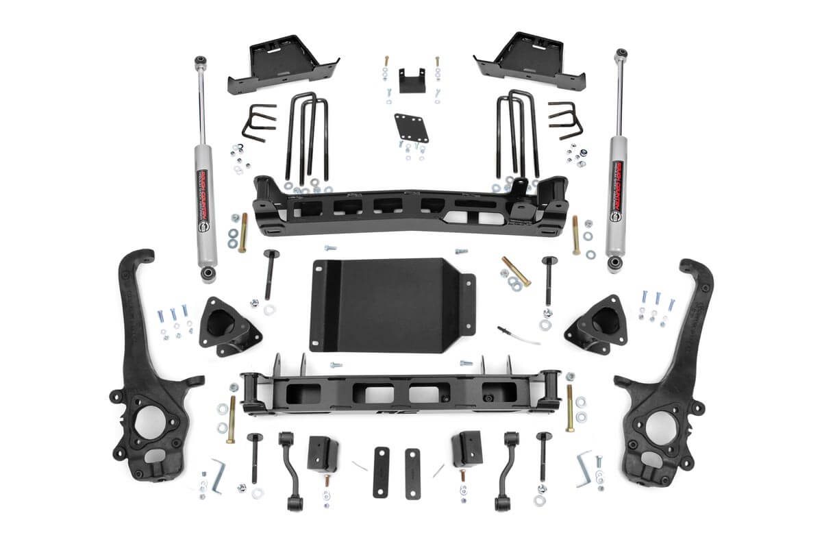 Explore New Heights: Give your first-generation Nissan Titan an aggressive new look and unparalleled off-road performance with Rough Country's 6-inch Suspension Lift. This all-inclusive kit features everything needed to take your Nissan off the freeway and into the fields.Innovative Design and Construction: When changing a vehicle's suspension, the key to preserving ride quality is keeping the geometry of all suspension components as close to their factory angles as possible. This suspension kit combines the use of durable steel knuckles, differential brackets, and drop cross members to reduce cv angles and simulate factory angles all while achieving new heights. Featuring a set of upper strut spacers that offer uncompromised strength and rigidity, gaining lift height is no issue. Completing the rear of this suspension kit is a set of rear blocks, shocks, and u-bolts that allow you to retain factory-like geometry. This combined setup provides enough clearance to run 35" tires without additional modifications. We didn't want to limit you to one standard kit. Rough Country's 6-inch kit is also available with our premium N3 loaded struts. These performance N3 struts are specifically tuned for the Nissan Titan and offer improved tire contact with the road for increased stability and performance.Installation: With minor cutting and a strut compressor required to install, an estimated timeframe of 8-10 hours is recommended to complete this full installation. This full kit can be installed at home and can be completed efficiently and quickly!Limited Lifetime Replacement Warranty: Rough Country's 6" Suspension Lift Kit is backed with a limited lifetime replacement warranty towards manufacturer defects. As such, the product is protected from structural and workmanship damage after the date of purchase. With our industry-leading warranty give yourself peace of mind when using Rough Country's Suspension products!